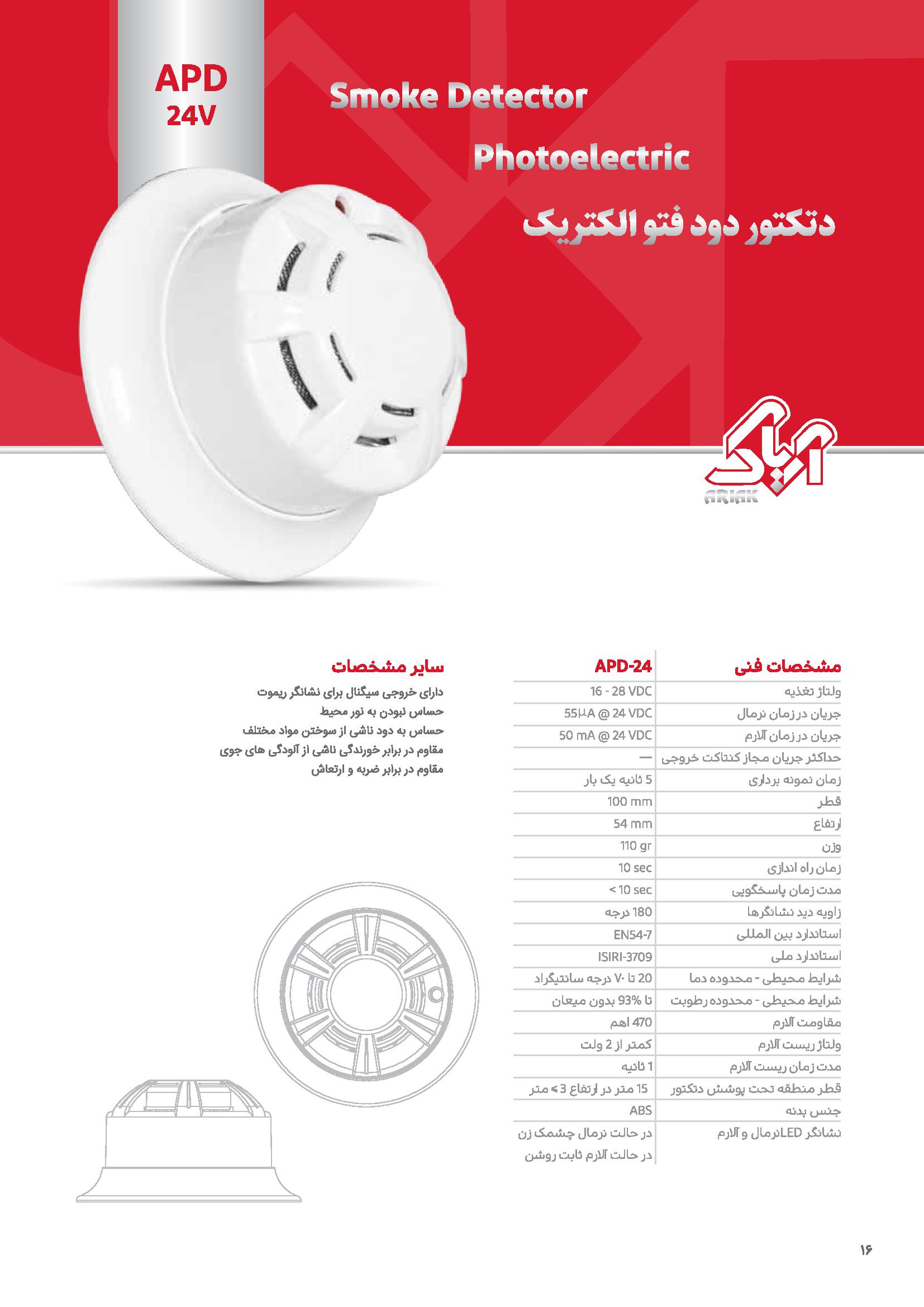 دتکتور دود فوتوالکتریک 24 ولت APDA-24 متعارف آریاک