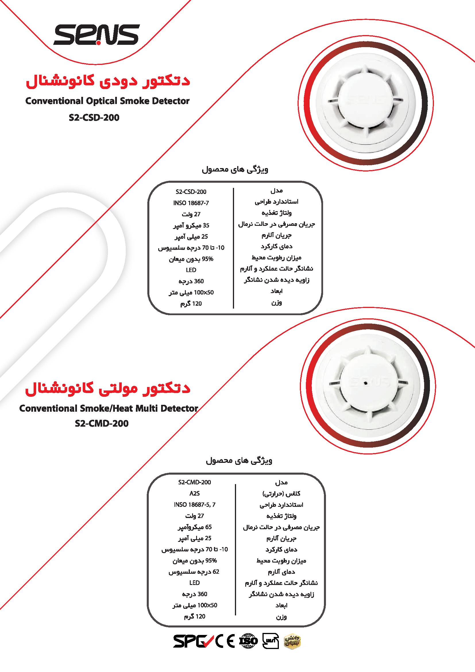 دتکتور دودی نقطه ای سنس مدل S2-200