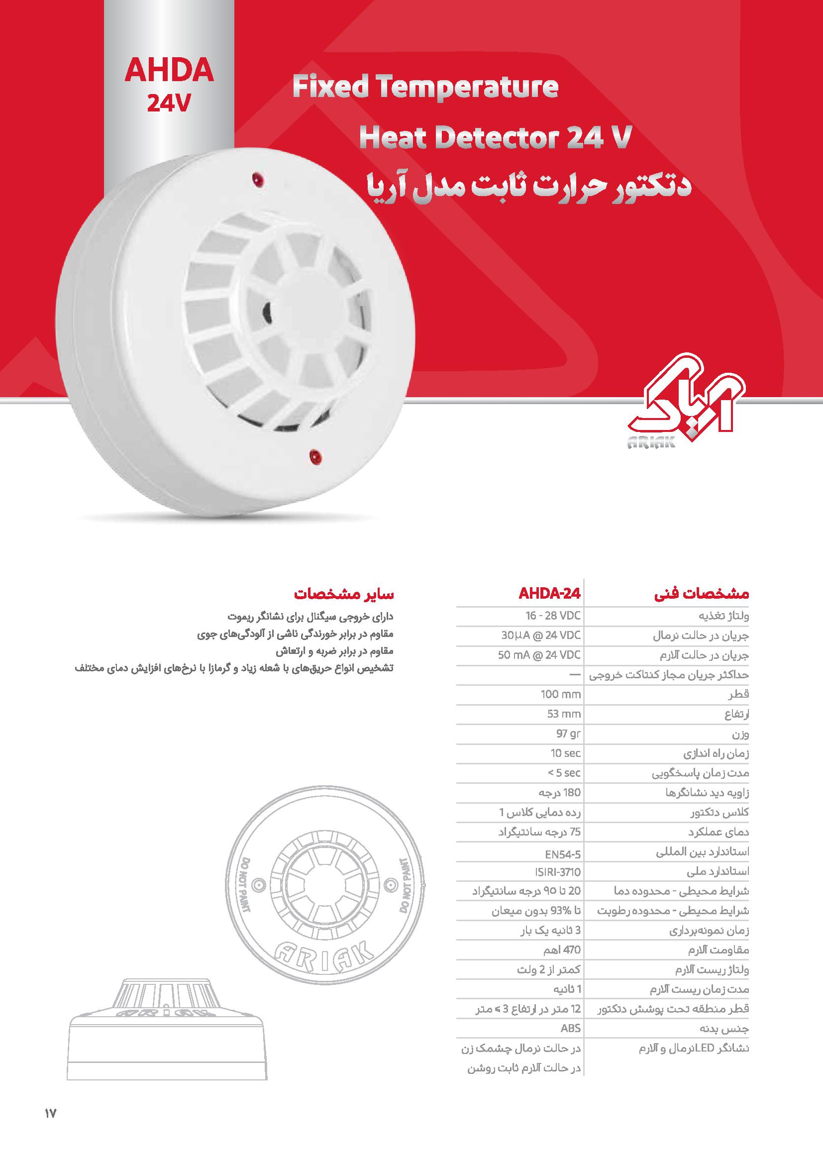 دتکتور حرارت ثابت 24 ولت با پایه 24-AHDA مدل آریا متعارف آریاک ARIAK را میتوانید همواره با ارزان ترین قیمت از فروشگاه ایتوک تهیه بکنید.