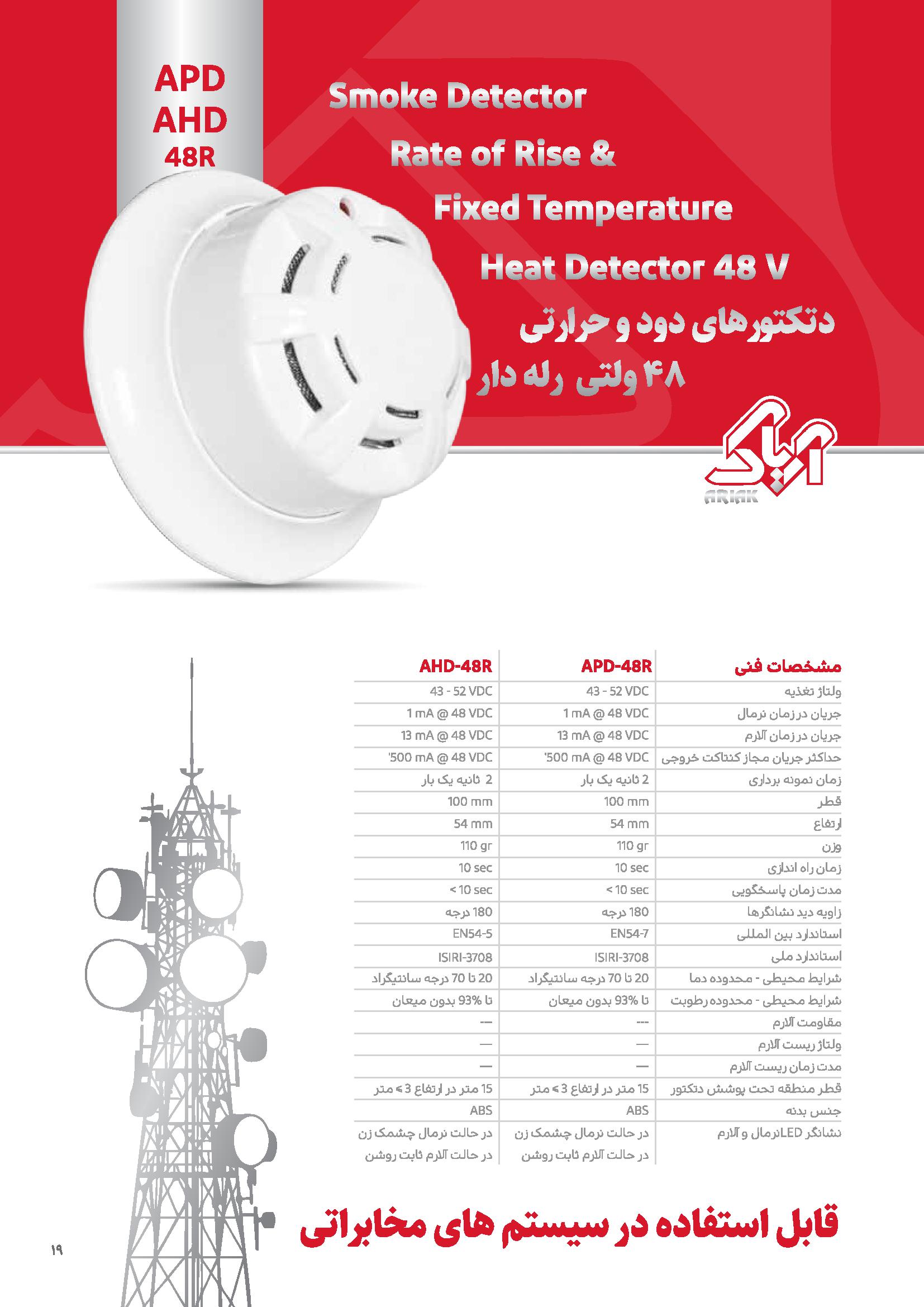 دتکتور حرارت ثابت 48 ولت رله دار با پایه 48-AFH آریاک شامل 2 سال گارانتی می باشد و از فروشگاه ایتوک نمایندگی رسمی ARIAK ایران می توانید تهیه بکنید.