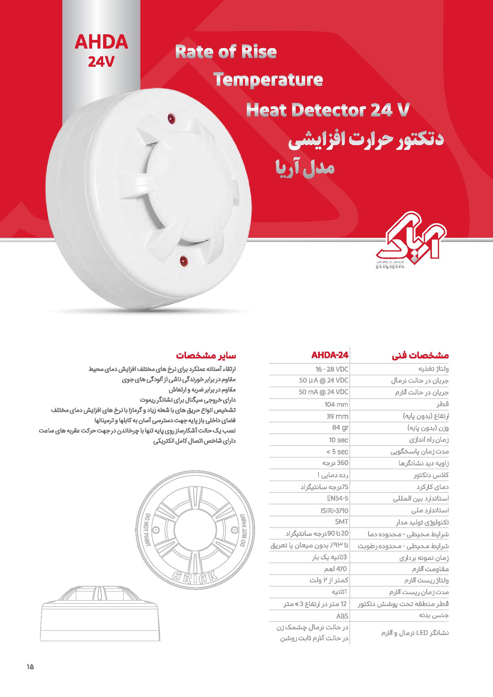 کیفیت و قابلیت دتکتور حرارتی افزایشی آریاک
