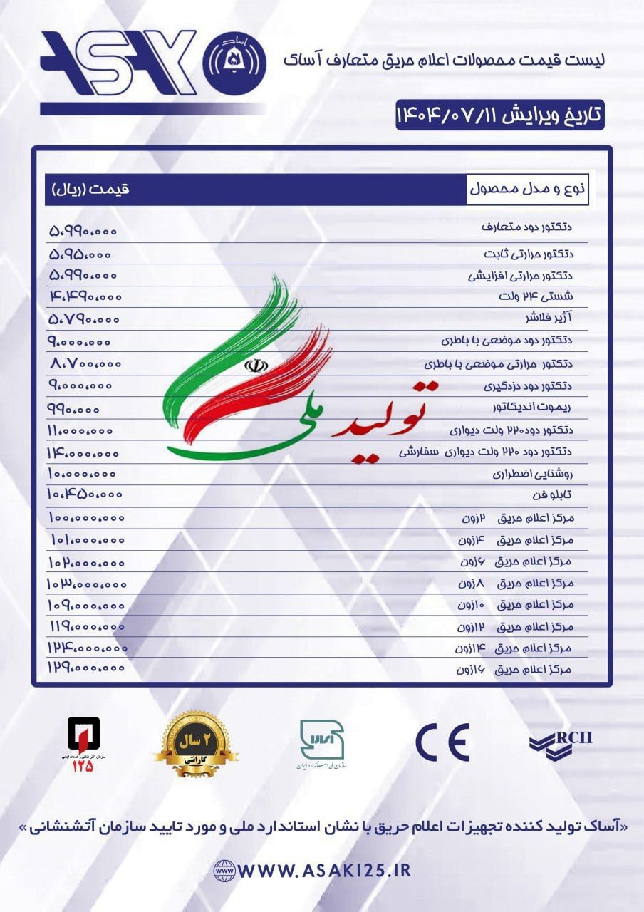 لیست قیمت موقت محصولات اعلام حریق آساک