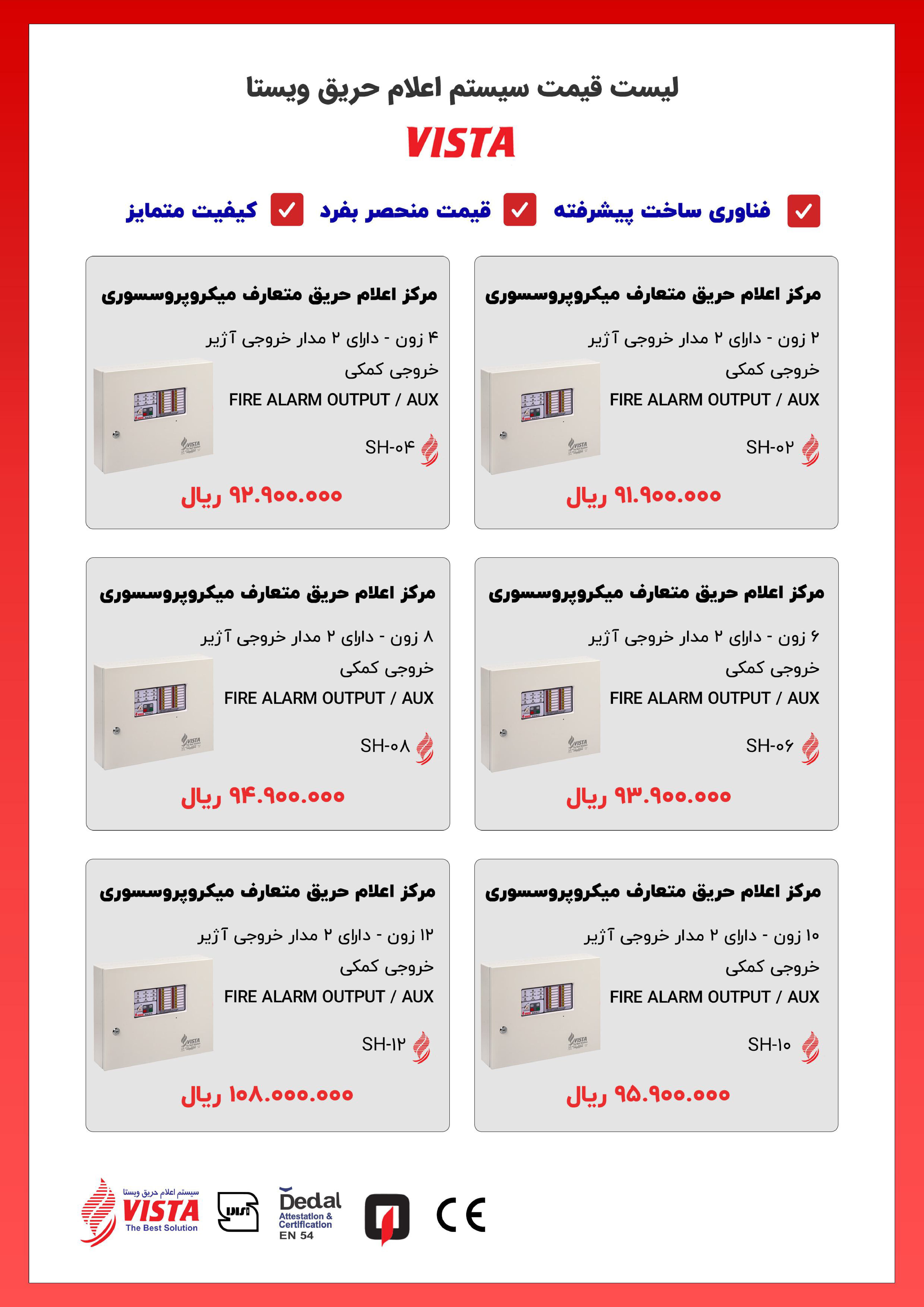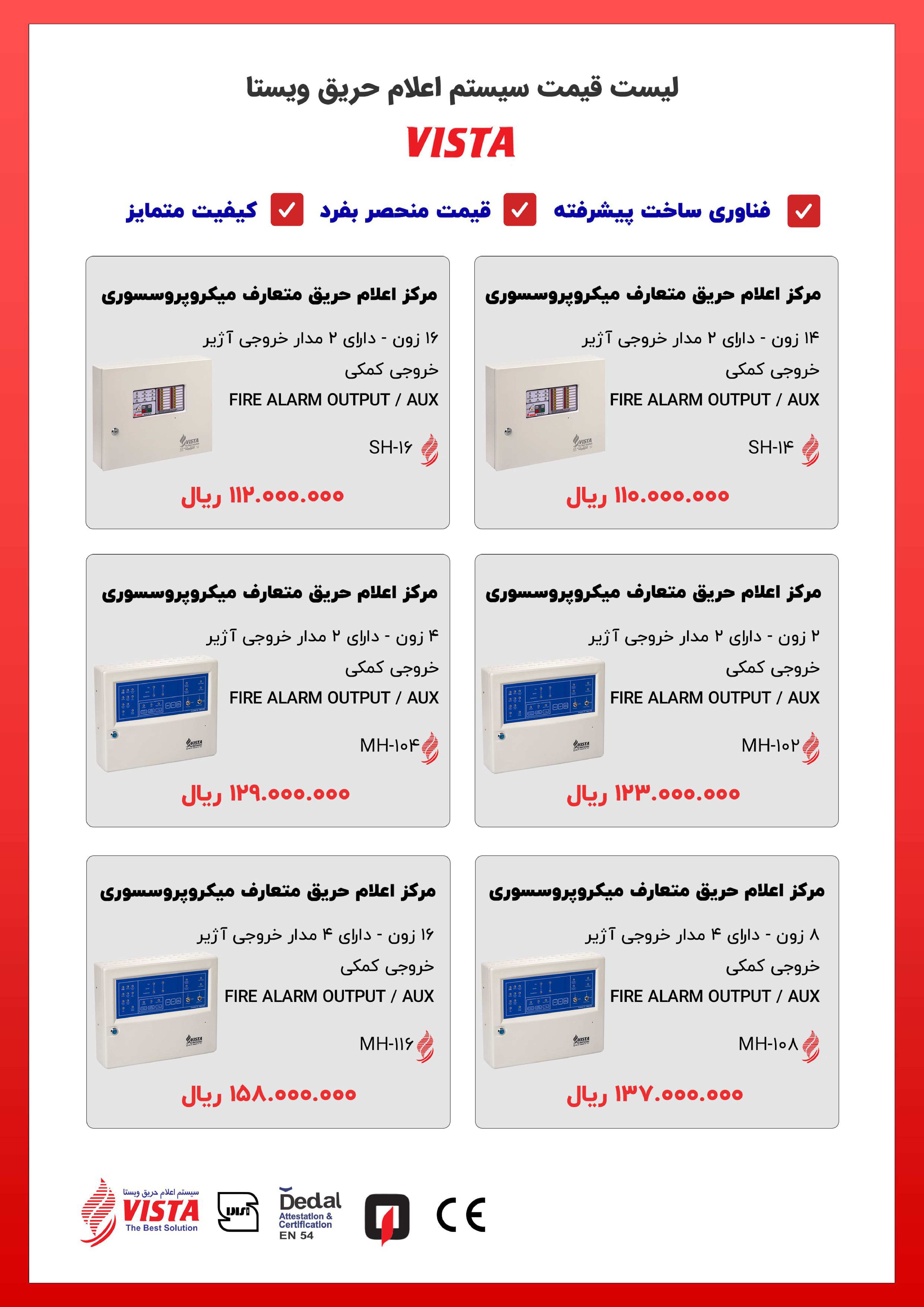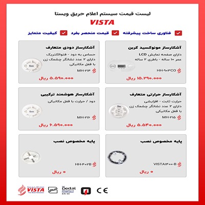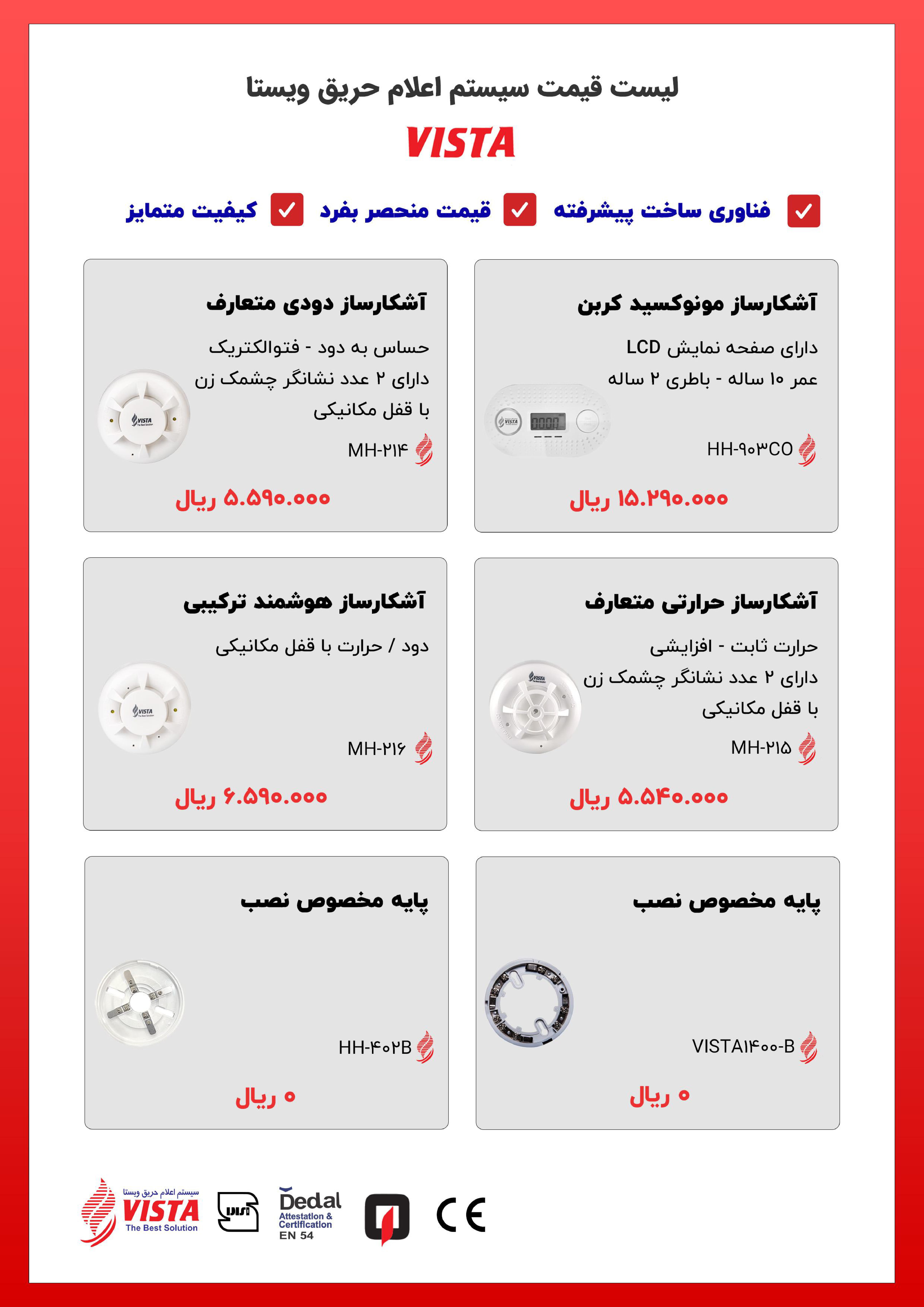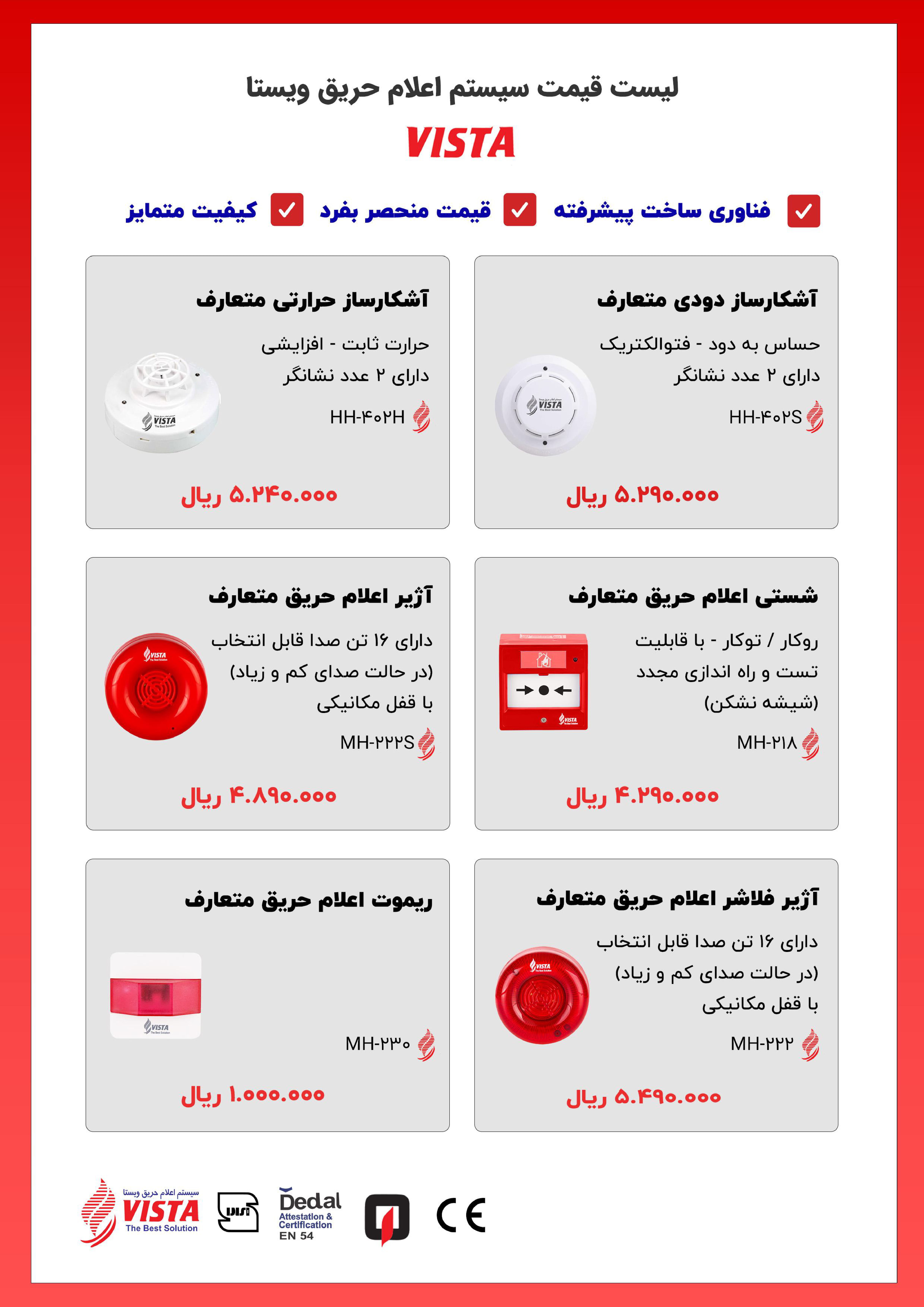 لیست قیمت موقت محصولات اعلام حریق ویستا