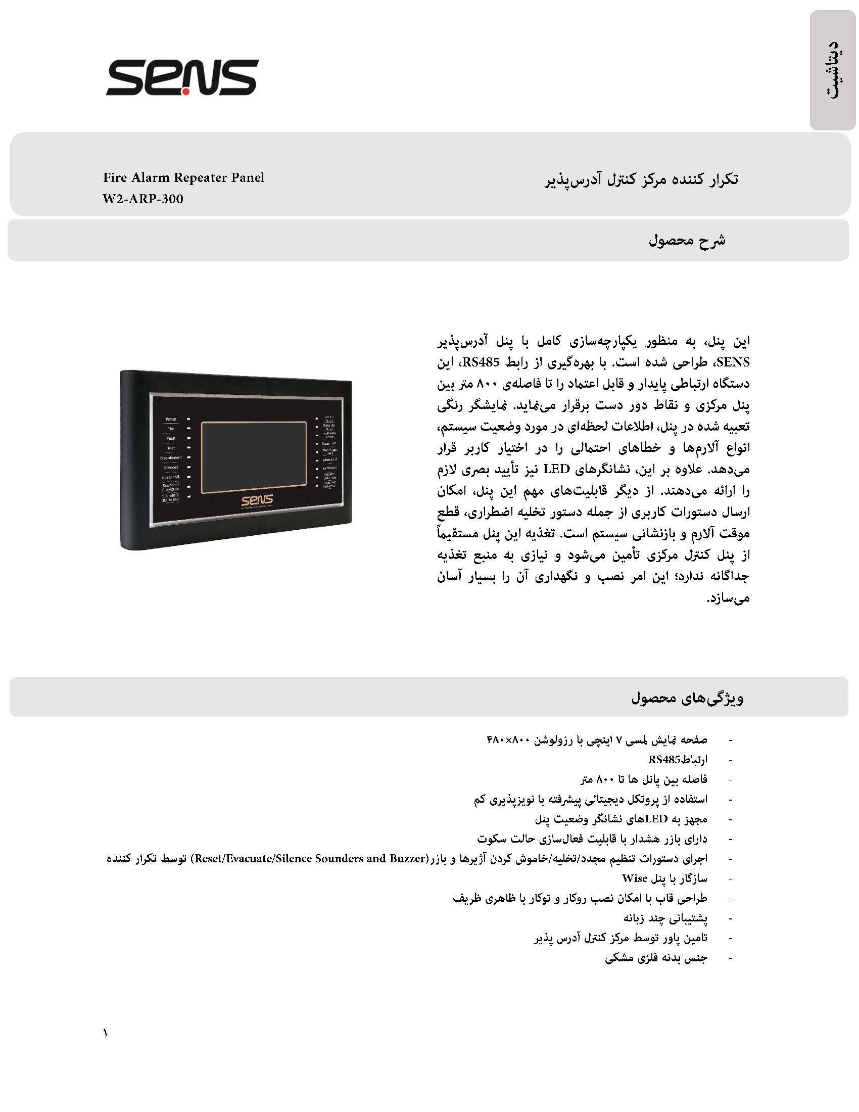 کاتالوگ اعلام حریق آدرس پذیر سنس