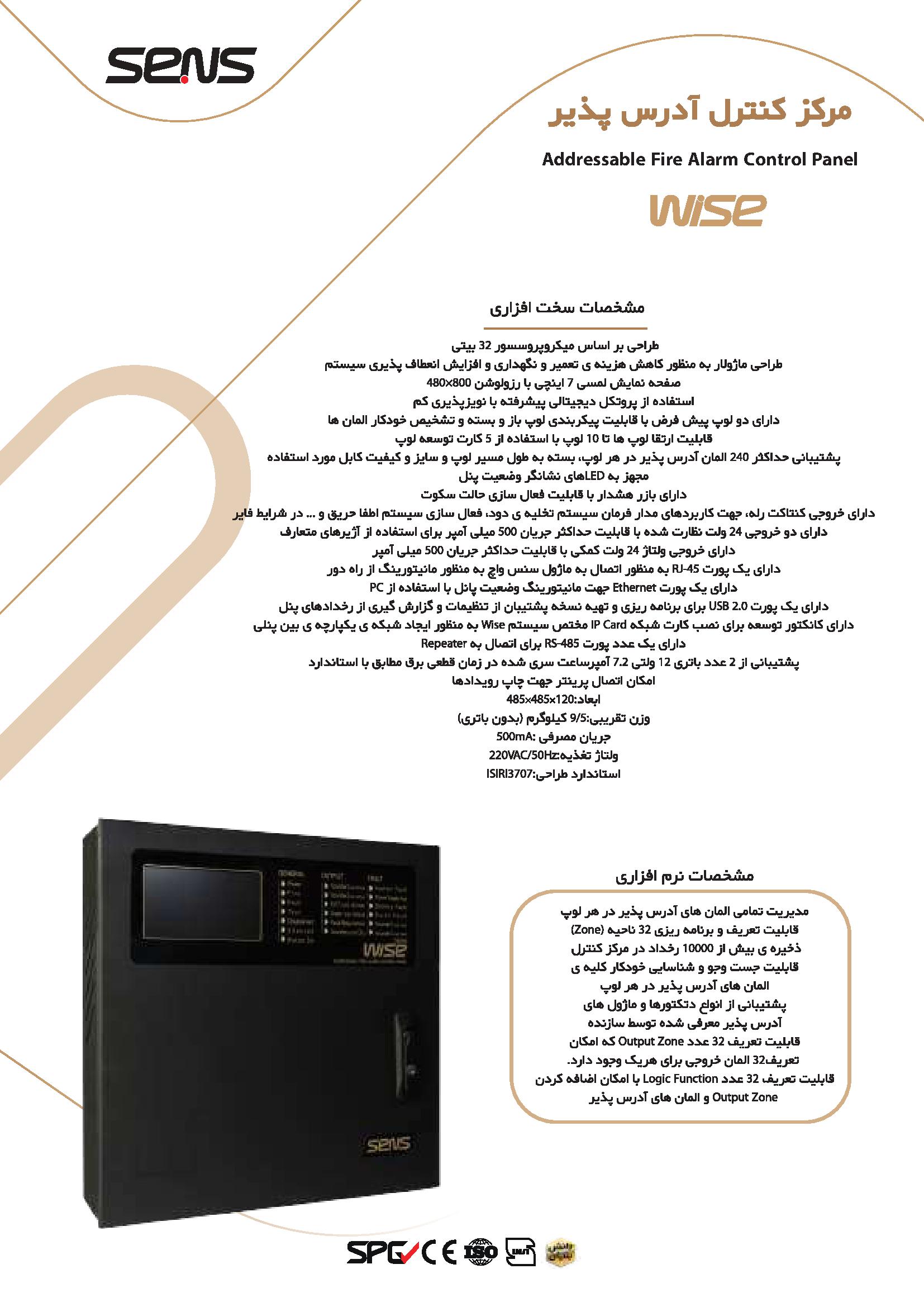 مرکز کنترل Wise، یک مرکز کنترل اعلان حریق آدرسپذیر که قابلیت مدیریت و آدرسدهی تک تک المانهای متصل شده به آن را دارا بوده و بر اساس نیاز پروژههای ساختمانی عظیم اطلاعات مربوط به موقعیت دقیق حریق را از طریق انواع روشهای مانیتورینگ تکرارکننده، شبکه و مرکز مانیتورینگ میتواند ارائه دهد. این پنل با دارا بودن امکان برنامهریزی و سناریو نویسی انعطافپذیری بالایی در پروژههای پیچیده دارد.