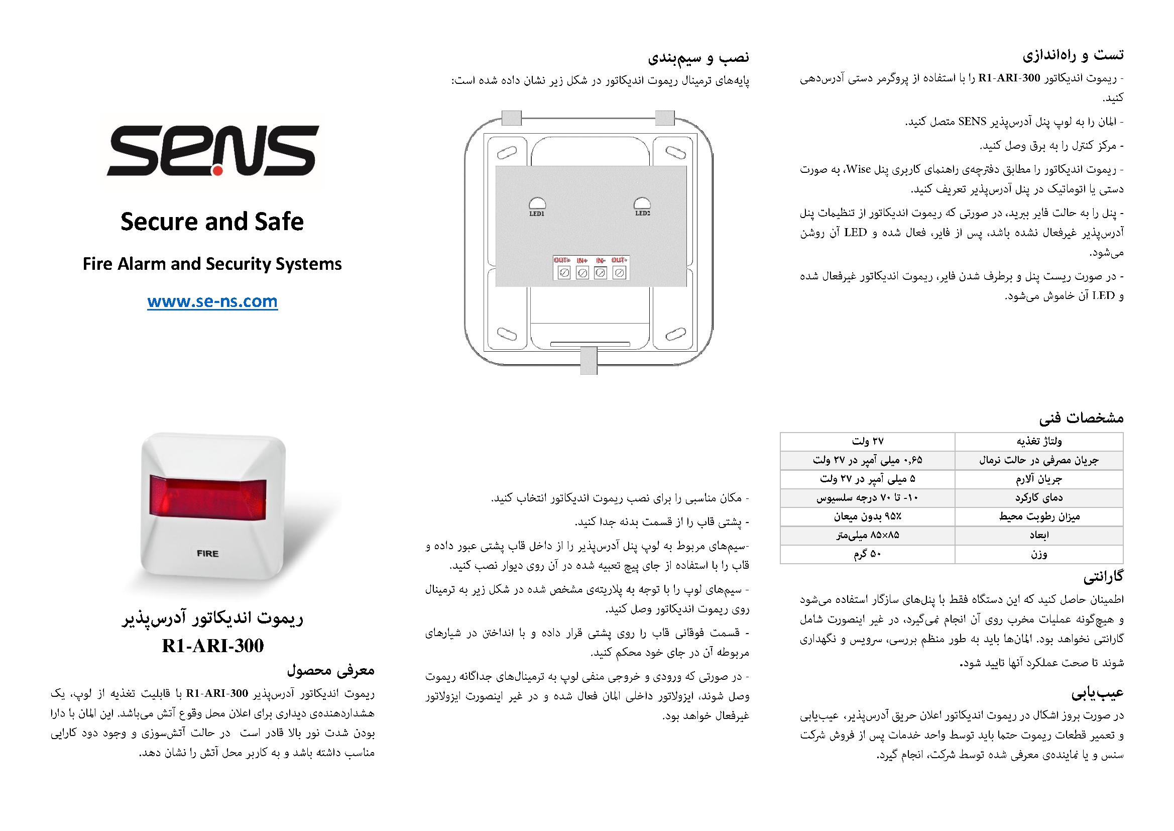 ریموت اندیکاتور R۱-ARI-۳۰۰ یک هشداردهندهی دیداری برای اعلان محل وقوع آتش میباشد. این المان با دارا بودن شدت نور بالا به لوپ سیستم آدرسپذیر وصل شده و قادراست حتی در حالت آتشسوزی و وجود دود کارایی داشته باشد و به کاربر محل آتش را نشان دهد. در یک سیستم آدرسپذیر قابلیت آدرسدهی، زونبندی و مشخص کردن محل نصب نشانگرهای ریموت وجود دارد.