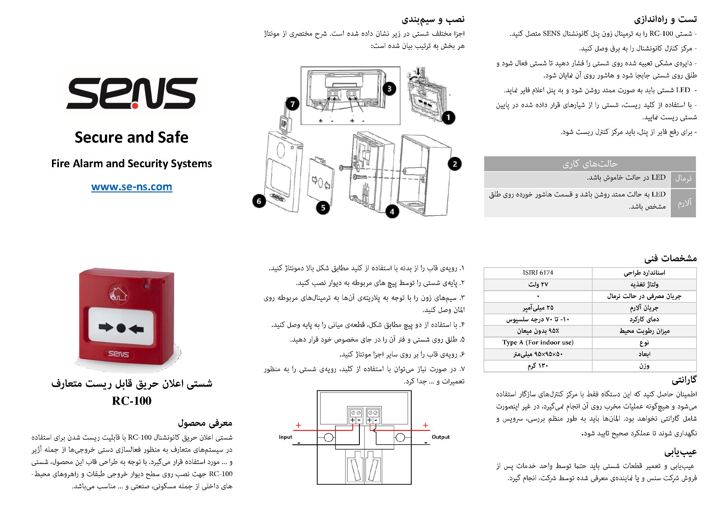 شستی اعلام حریق متعارف RC-100 سنس SENS شامل 2 سال گارانتی می باشد و از فروشگاه ایتوک صنعت نمایندگی رسمی SENS ایران می توانید تهیه بکنید.